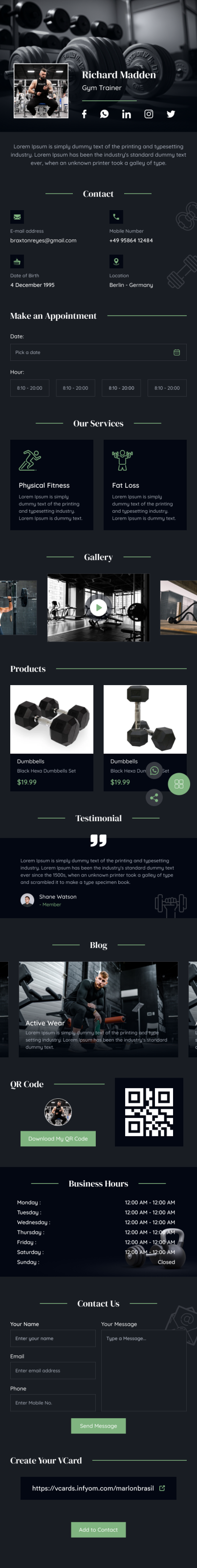 Gym Trainer vCard